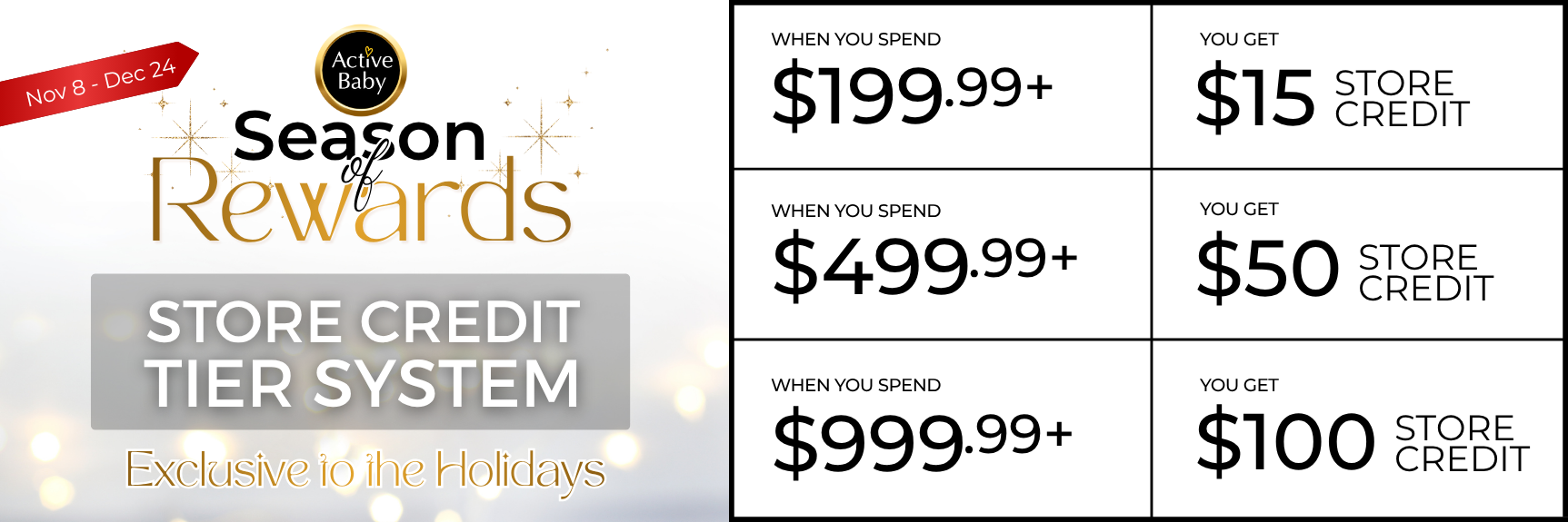 We know holiday shopping can be expensive, which is why we are giving you the ability to shop for the holidays and earn money back. This event introduces an all new holiday exclusive 3-tier system for you to earn store credit back every time you shop.