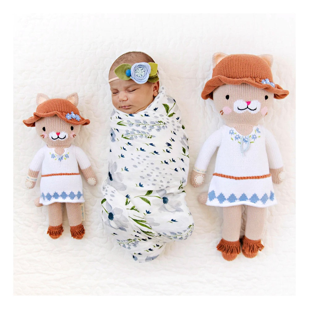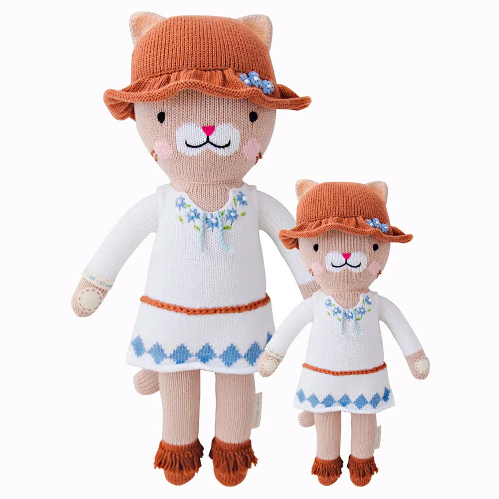 Meet Chelsea the Cat—a heartwarming and cuddly companion that brings comfort and joy to your little one! This lovingly handcrafted, soft and cozy plush doll is made with the highest quality materials, ensuring it's gentle against sensitive skin. Chelsea the Cat is a charming, friendly little feline with a sweet face, adorable outfit and a playful personality that makes her the perfect snuggle buddy for children of all ages.