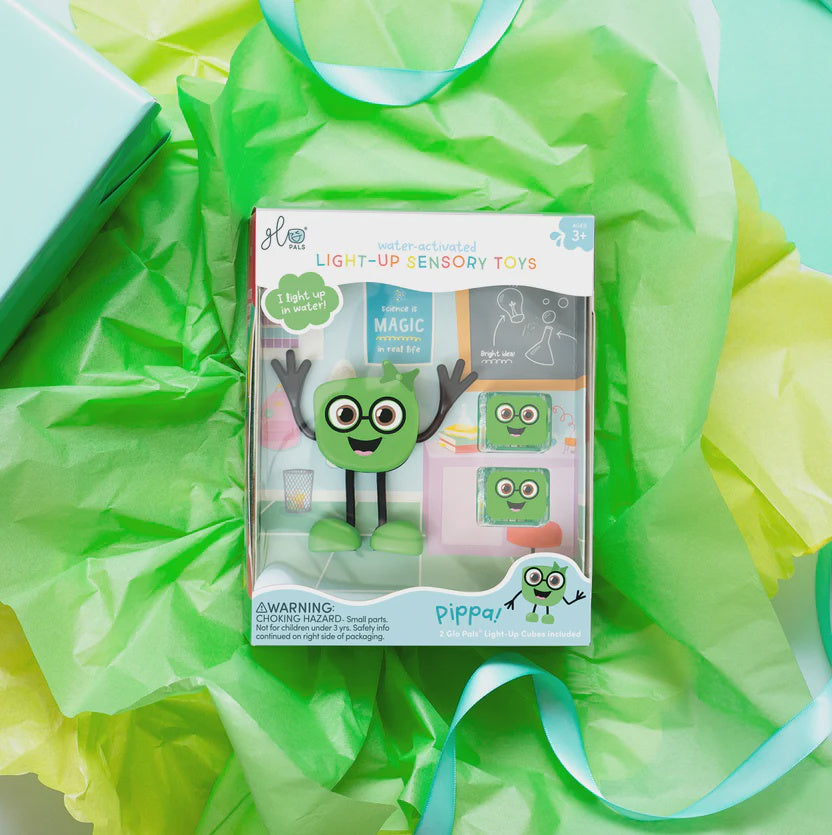 Insert your Glo Pals Light-Up Cube into the back of each Pal, drop it in the water, and watch it light up! Featuring bendable arms and colorful personalities, each Pal proudly illustrates the uniqueness in every child! Pippa comes with two Glo Pals Light-Up Cubes included in the box!