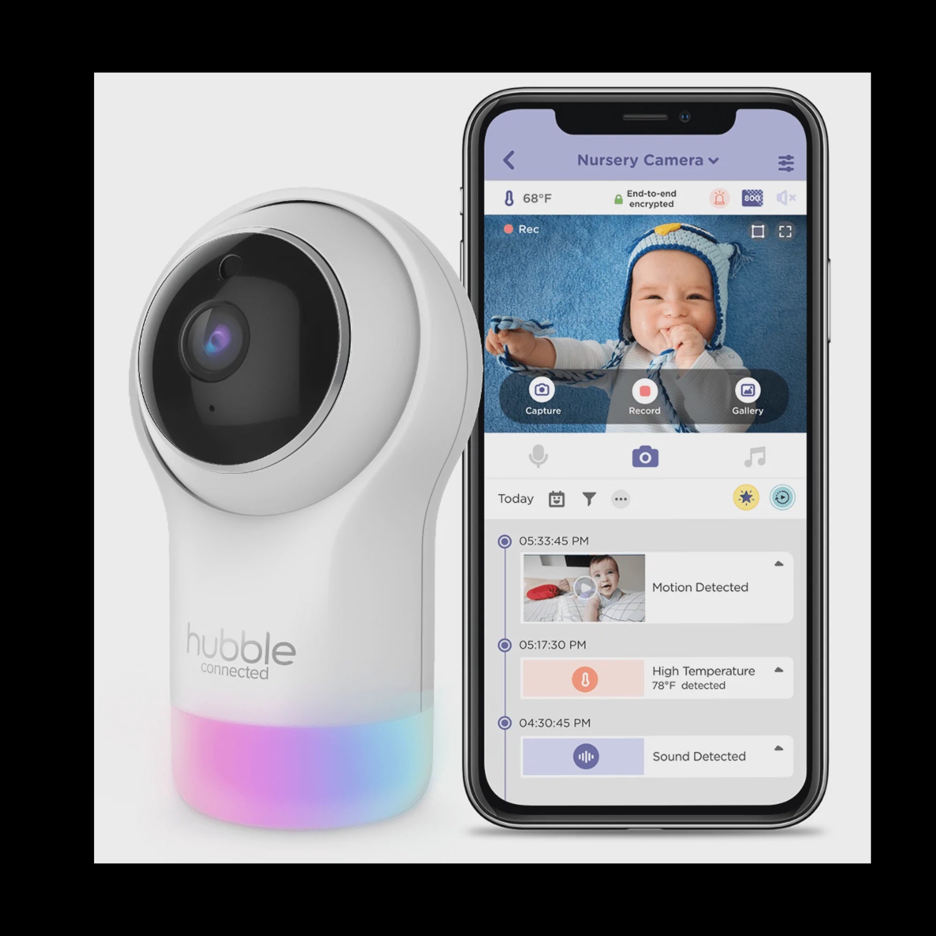 More than just a baby monitor, Nursery Pal Premium doubles as an interactive viewer for parents and an entertainment/education tablet for your infant. The 5'' HD touchscreen offers remote, pan and tilt functions, live streaming, a protective bumper, and a flashlight. It also includes infrared night vision, a room temperature sensor, Two-Way Talk, Amazon Alexa/Google Assistant compatibility and a simple blind that covers the lens for privacy.