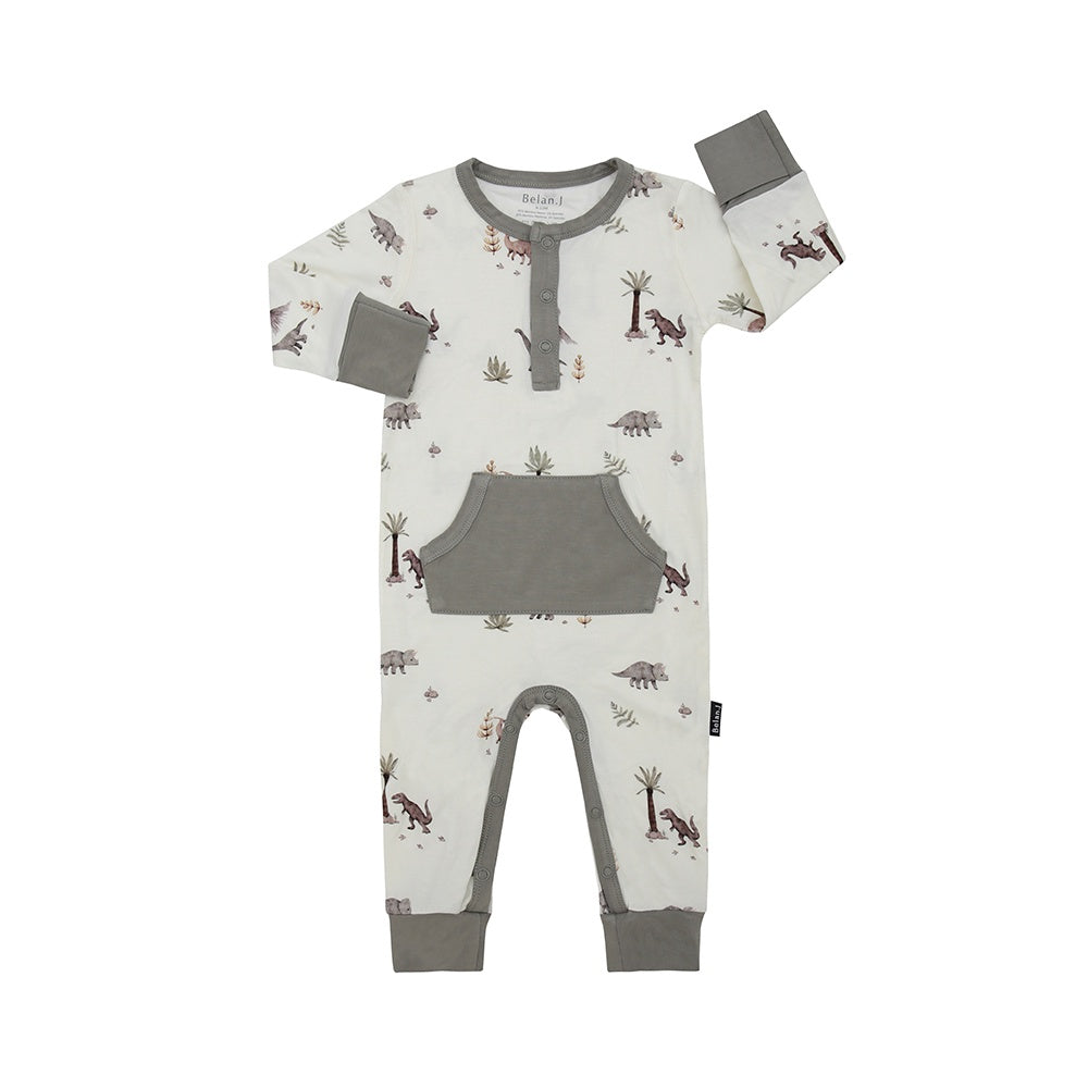 Long Sleeve Pocket Romper - Dinoland/Moss