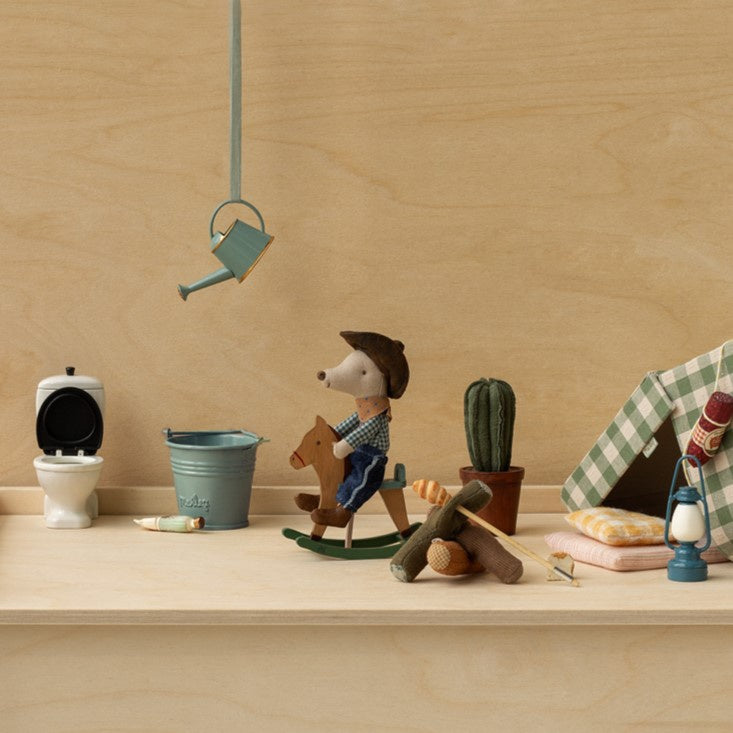 Maileg Little Brother Cowboy Mouse on Rocking Horse