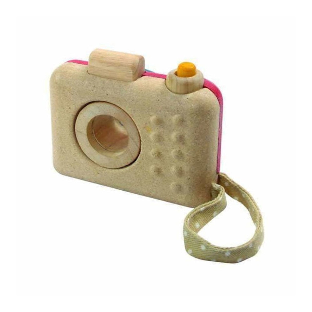 - The My First Camera is crafted with PlanWood. A PlanToys material made from surplus sawdust that results in a more flexible water-resistant wood and is pigmented with water-based and natural dyes that are free from harmful chemicals. Softened edges make the camera extra child-friendly and safe.