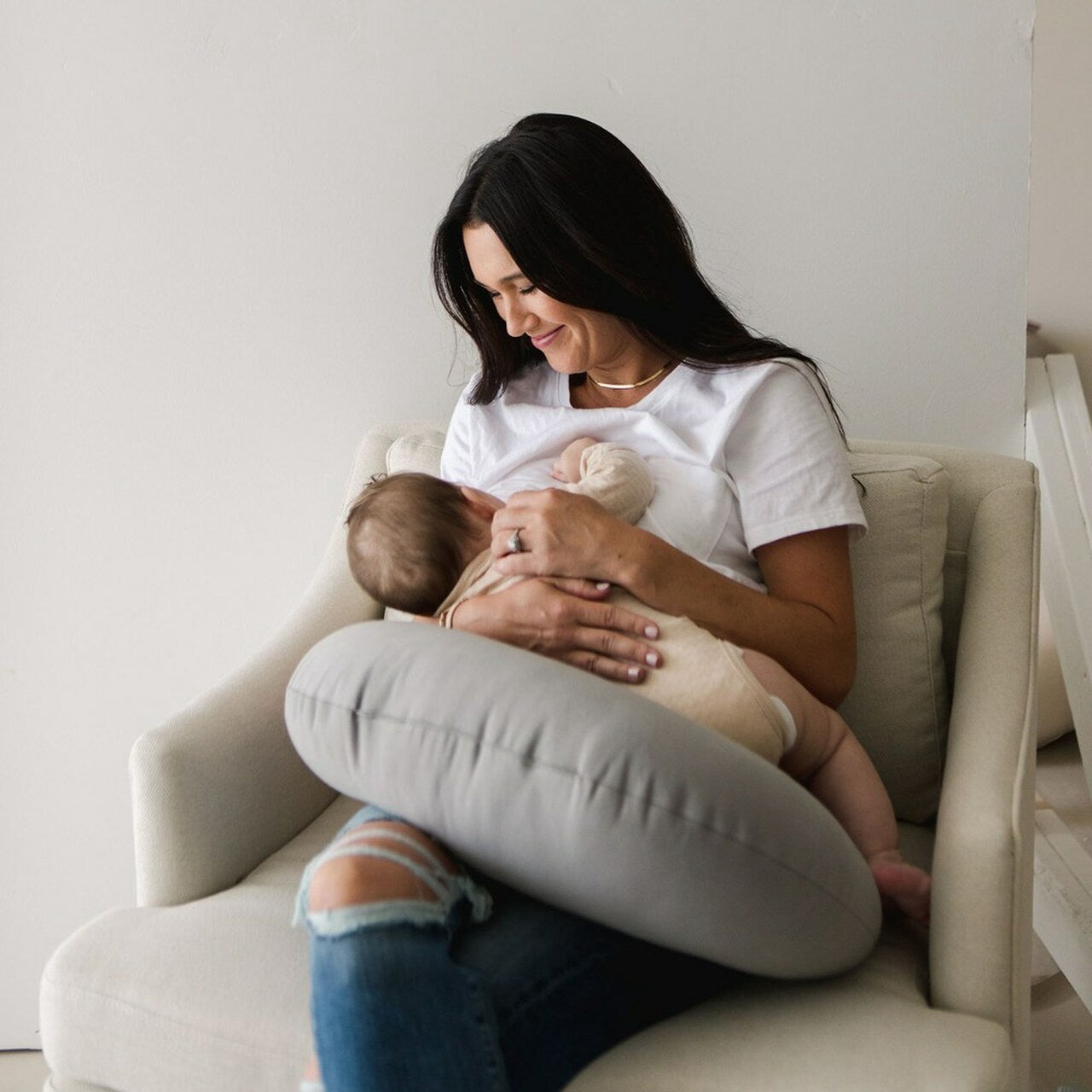 Narrow ends easily tuck behind your back to stabilize and create a less bulky nursing aid. Minimal, sophisticated design looks good in every home.